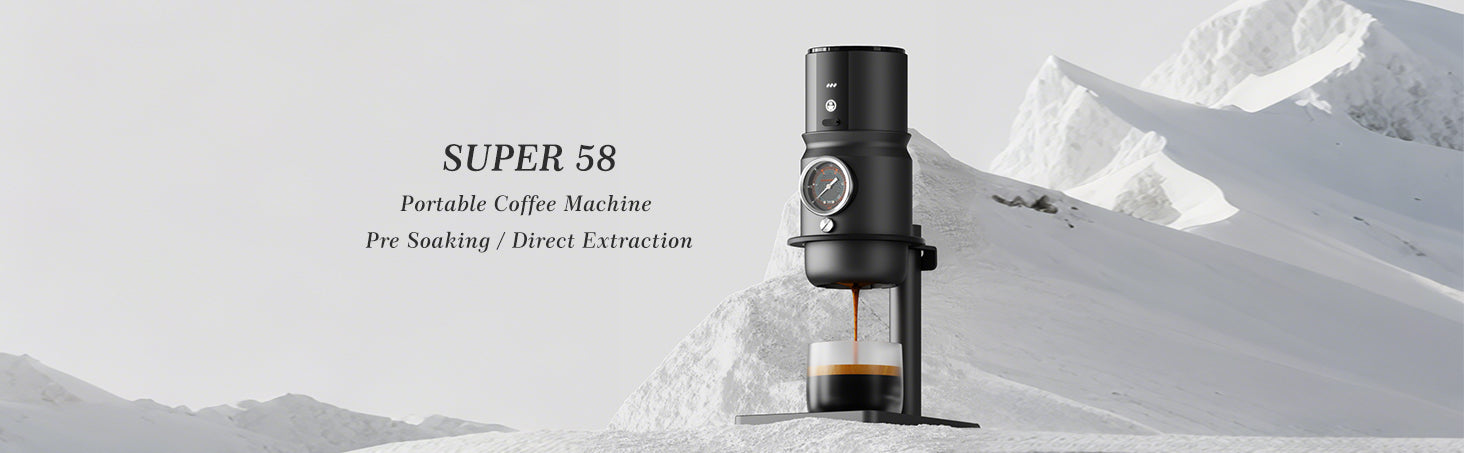 All-metal body: Super58 espresso machine is made of aluminum alloy, fully equipped with USB-C, stand, metering funnel, coffee tamper, silicone insulation sleeve and carrying bag, convenient for carrying out